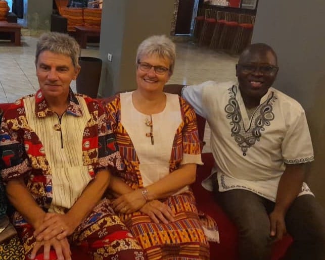 Sylvaine et Pierre-Étienne aux côtés de Célin Nzambe, médecin-chef de l’hôpital de Djoungolo © Sylvaine et Pierre-Étienne pour Défap